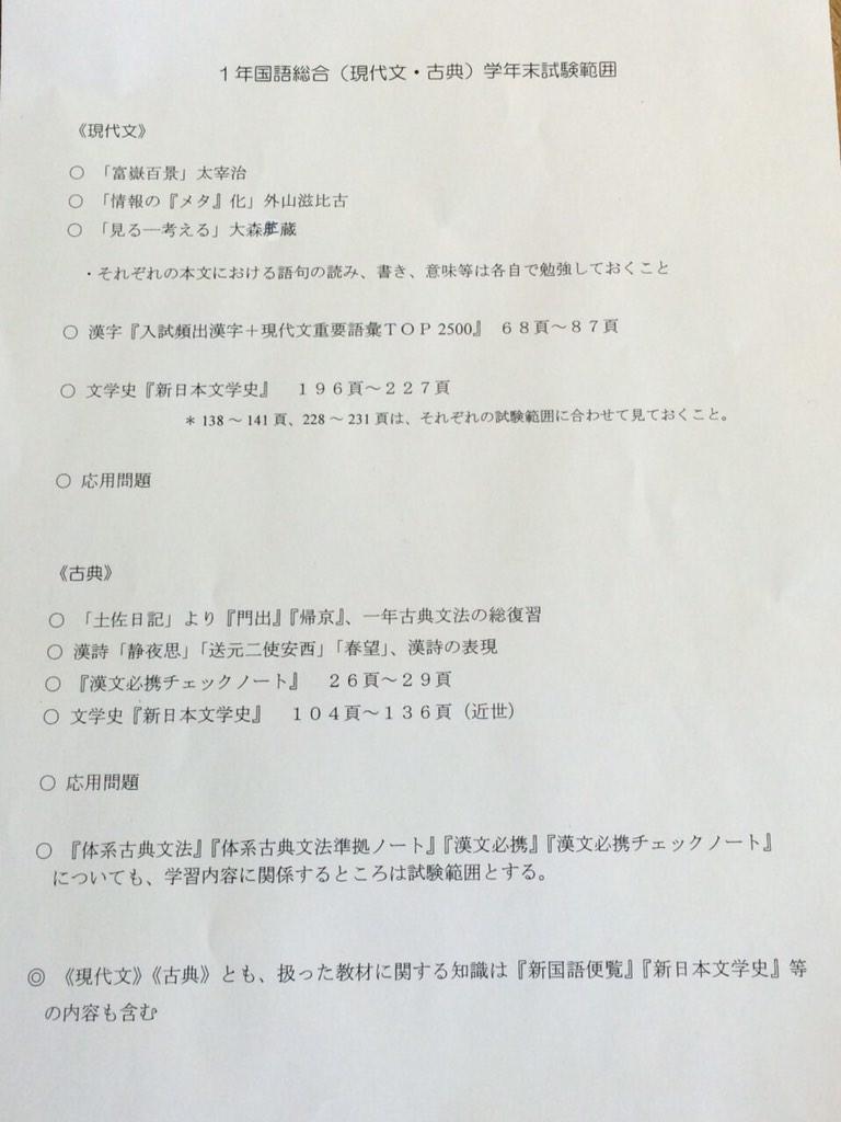 平成29年度1年生3学期期末テスト範囲